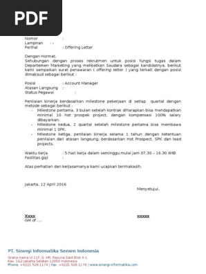 Surat Perjanjian Kerja Karyawan Permanen Offering Letter Fujiharu Com