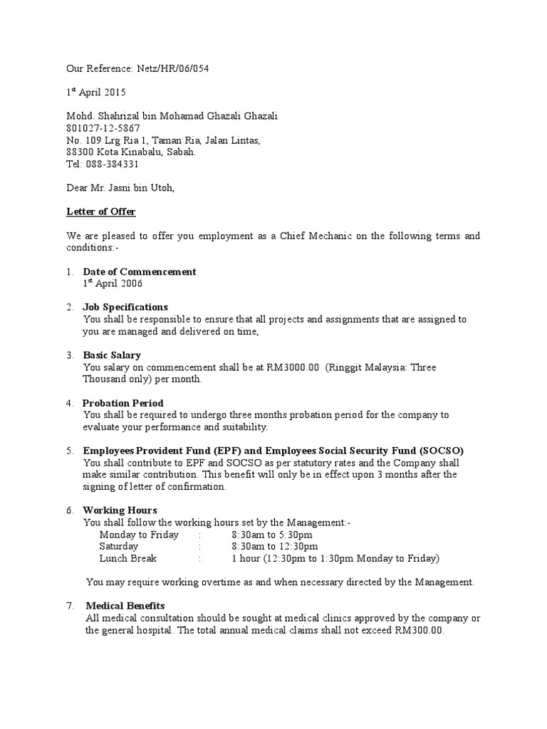 Nah ane cuma tandatangan Offering Letter mereka dimana di offering letter itu ane setuju sebagai karyawan kontrak sebagai staff besarnya gaji yang diberikan dan tanggal masuk kerja 2 Jan 2017. LETTER OF OFFER SURAT PENAWARAN. Offering letter bersifat sebagai penawaran untuk bekerja dari perusahaan kepada kandidat pekerja sehingga tidak mengikat secara hukum.